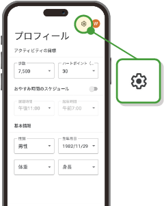 歩数や食事、運動、体重、睡眠、血圧、体温等の情報を
