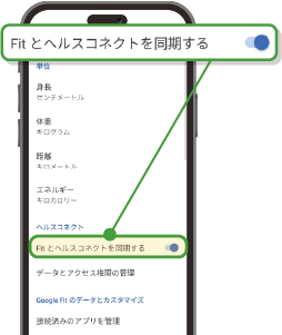 ❸「Fitとヘルスコネクトを同期する」を有効にする
